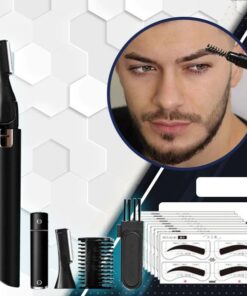 Set D – Trimmer per sopracciglia elettrico, adesivi per sopracciglia maschili, batterie, testina sostitutiva del rifinitore, spazzola per la pulizia, manuale dell’utente