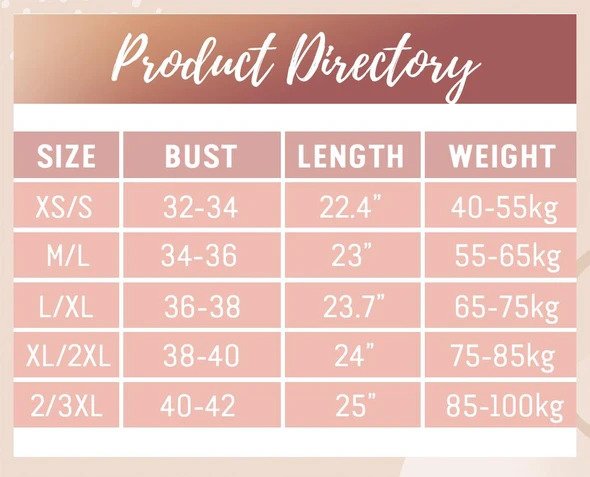 - Taglia: XS/S, M/L, L,XL, XL/2XL, 2XL/3XL